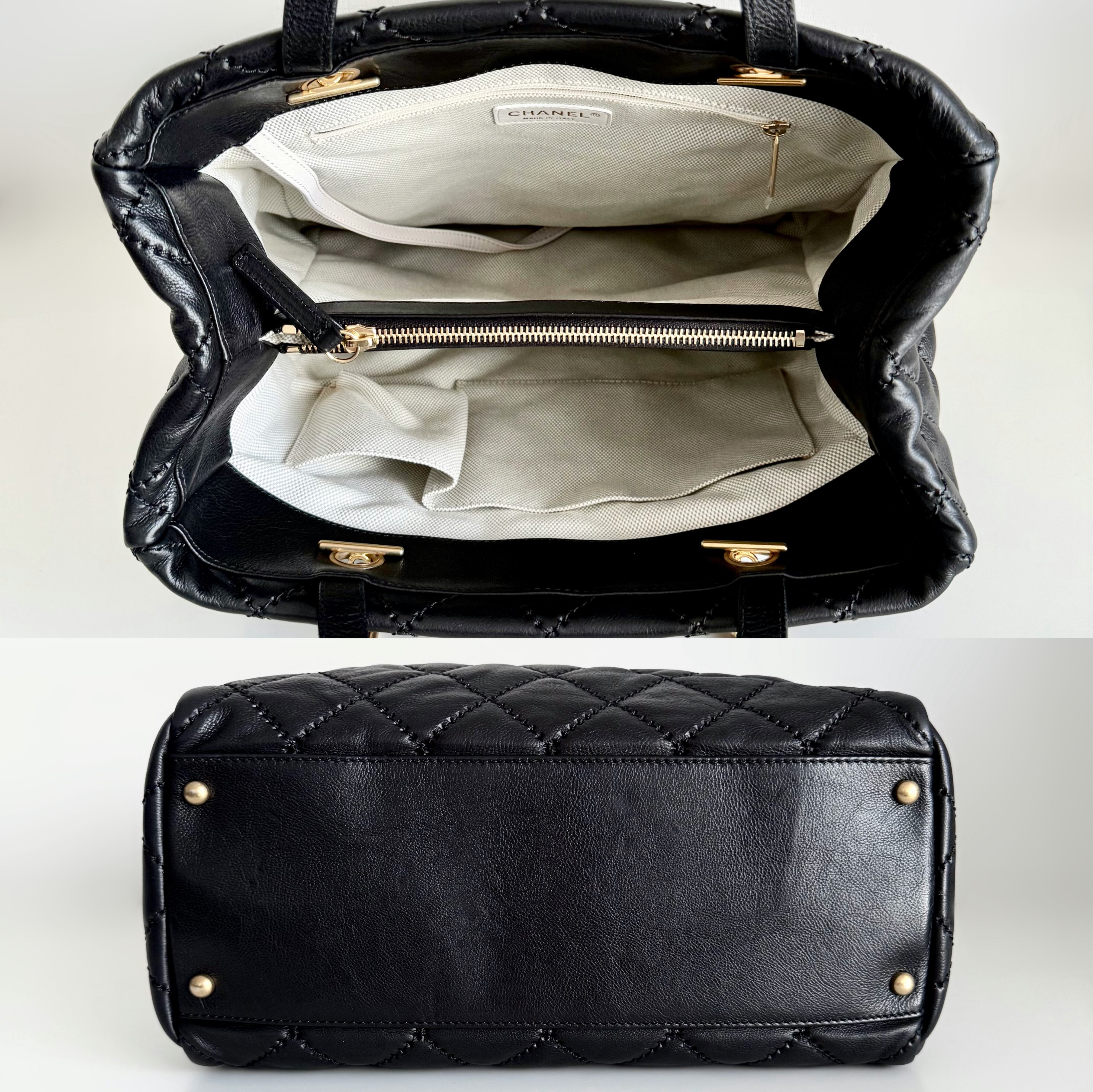 【中古】シャネル ワイルドステッチ チェーントートバッグ マトラッセ ココマーク ショルダーバッグ ラムスキン ゴールド金具 ブラック レディース