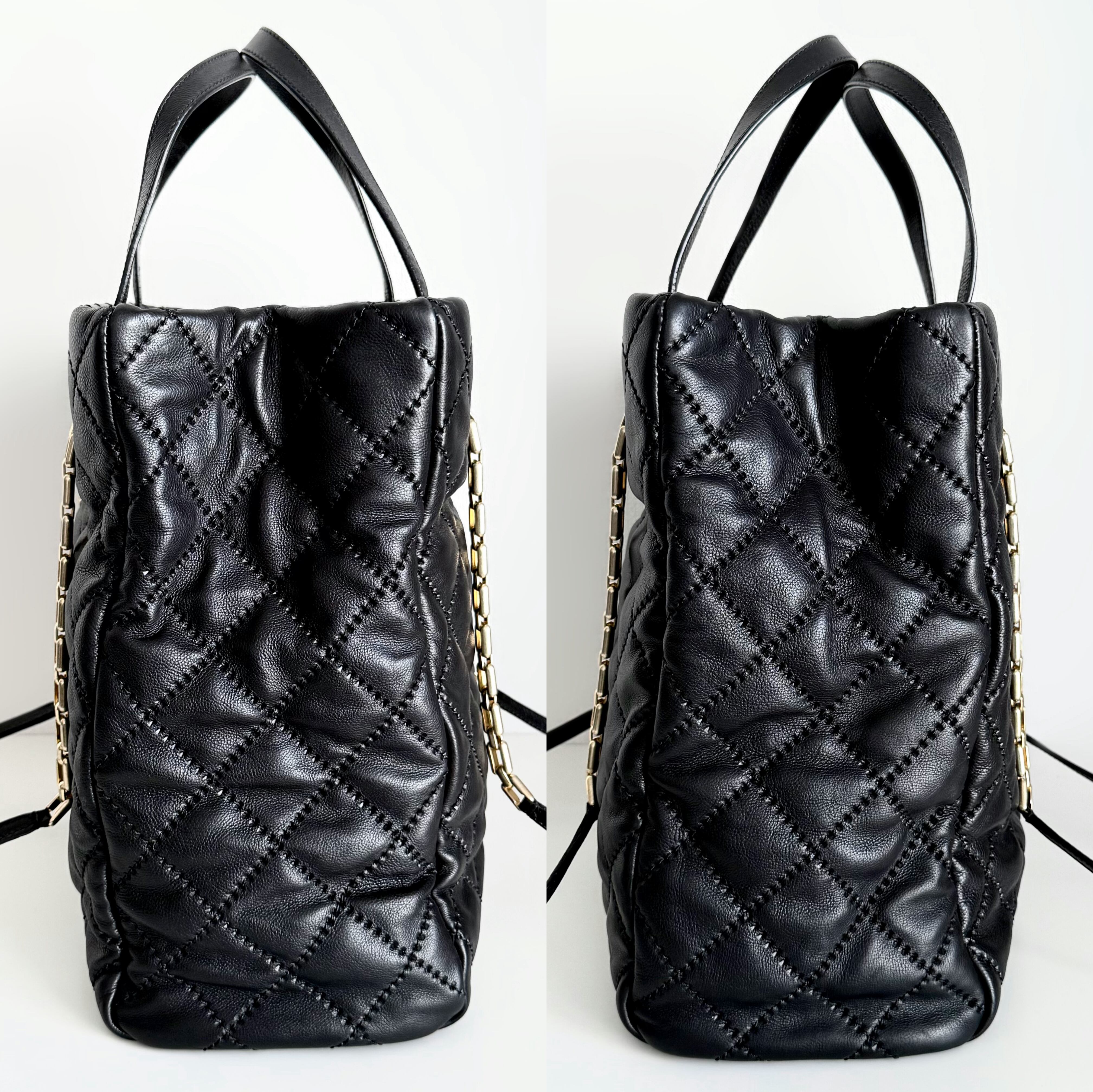 【瑕疵情報】外観:金具スレ傷、若干メッキ剥がれ、チェーンのレザー部分に若干スレ傷、型崩れ、シワ