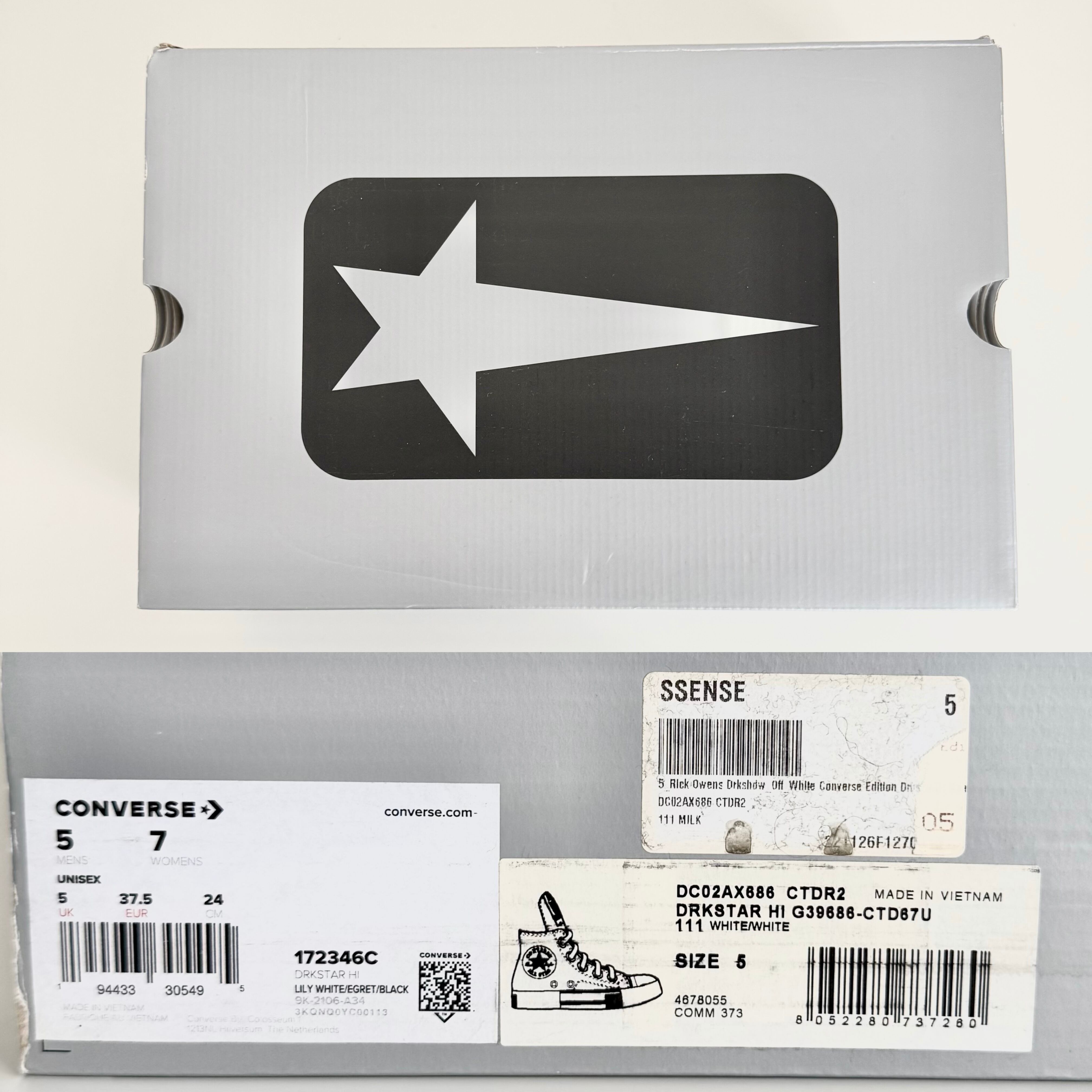 【美品】Rick Owens DRKSHDW リックオウエンス ダークシャドウ DRKSTAR HI ハイスニーカー 24cm ホワイト シューズ ユニセックス 中古 USED